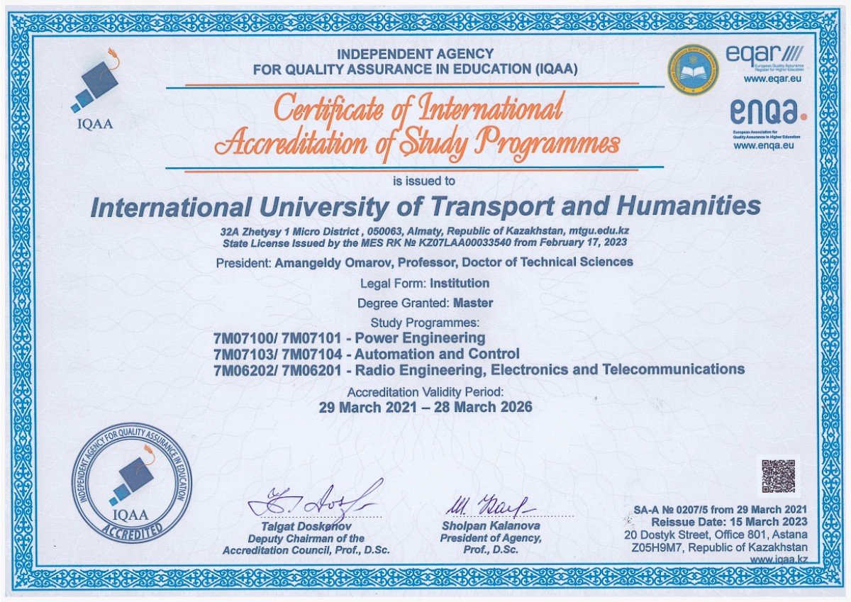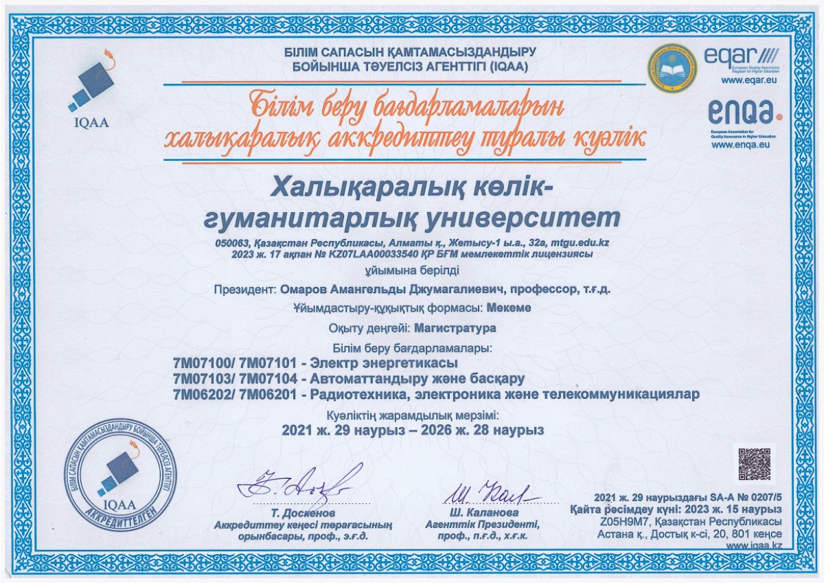 7М06202/1 Радиотехника, электроника және телекоммуникациялар