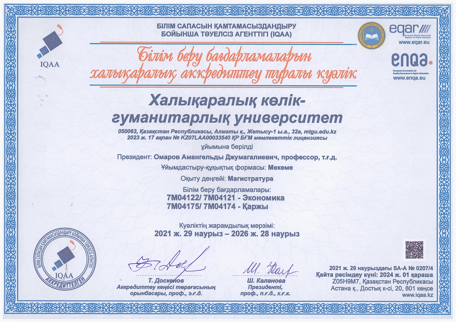 ХКГУ СЕРТИФИКАТТАР МҰРАҒАТЫ
