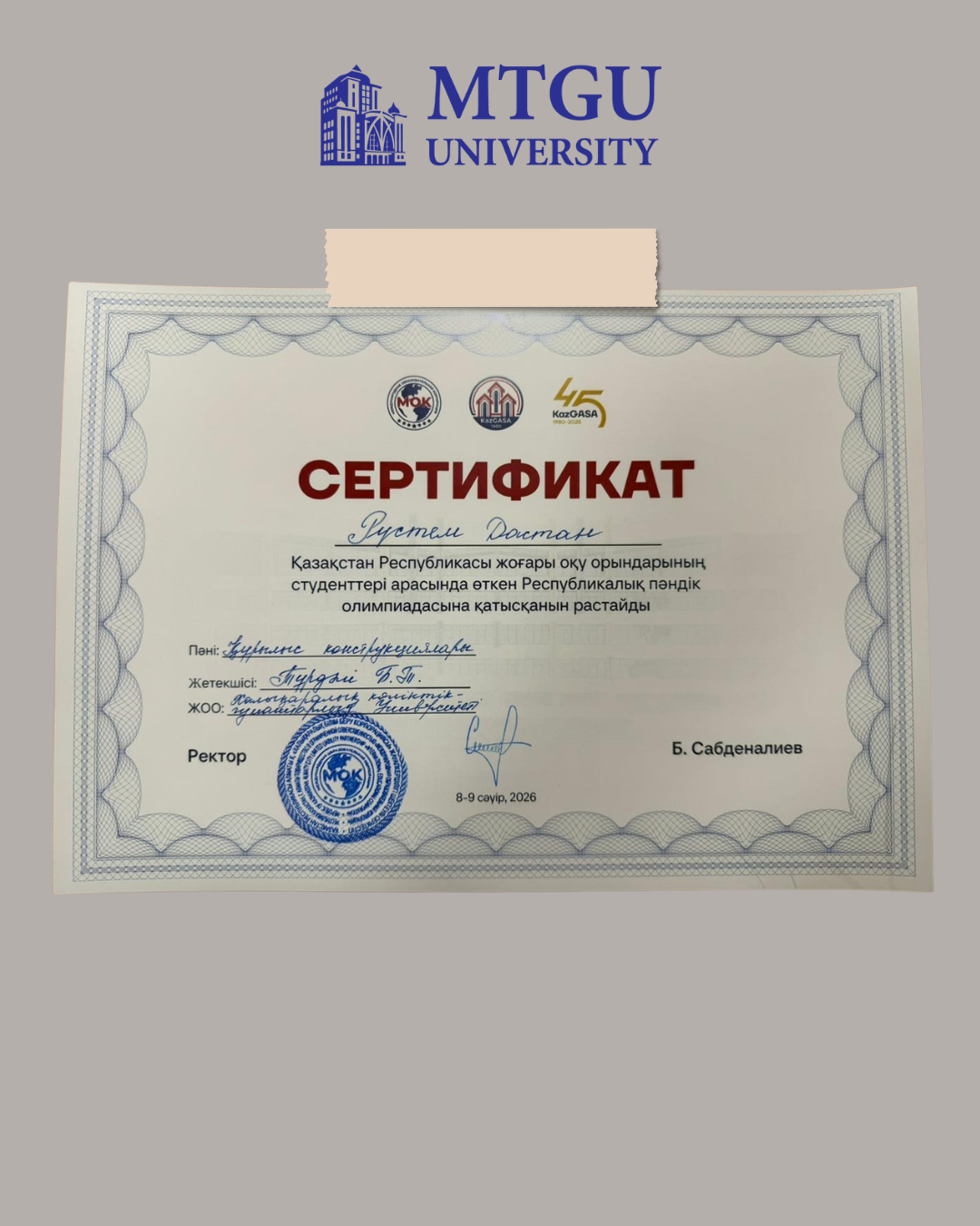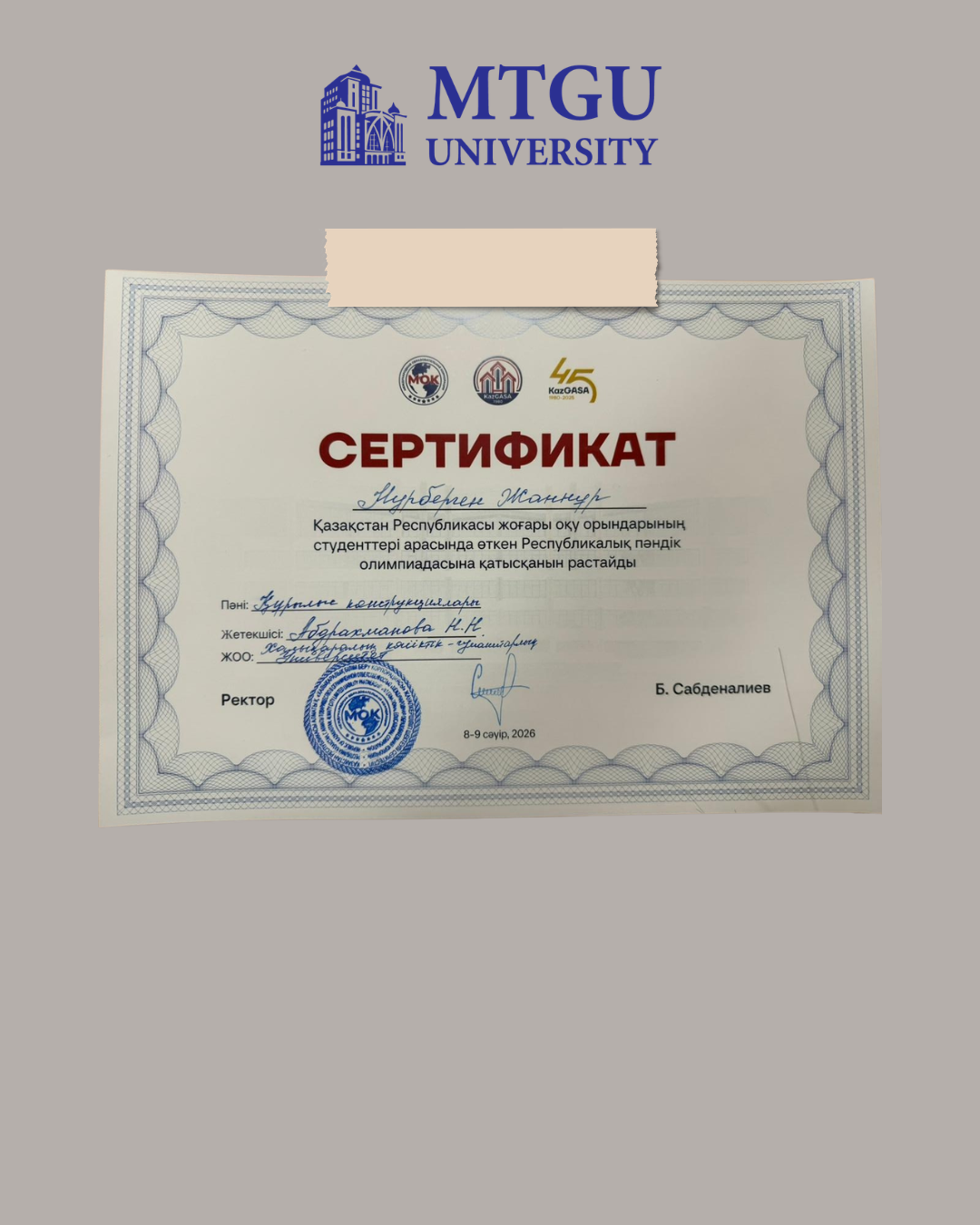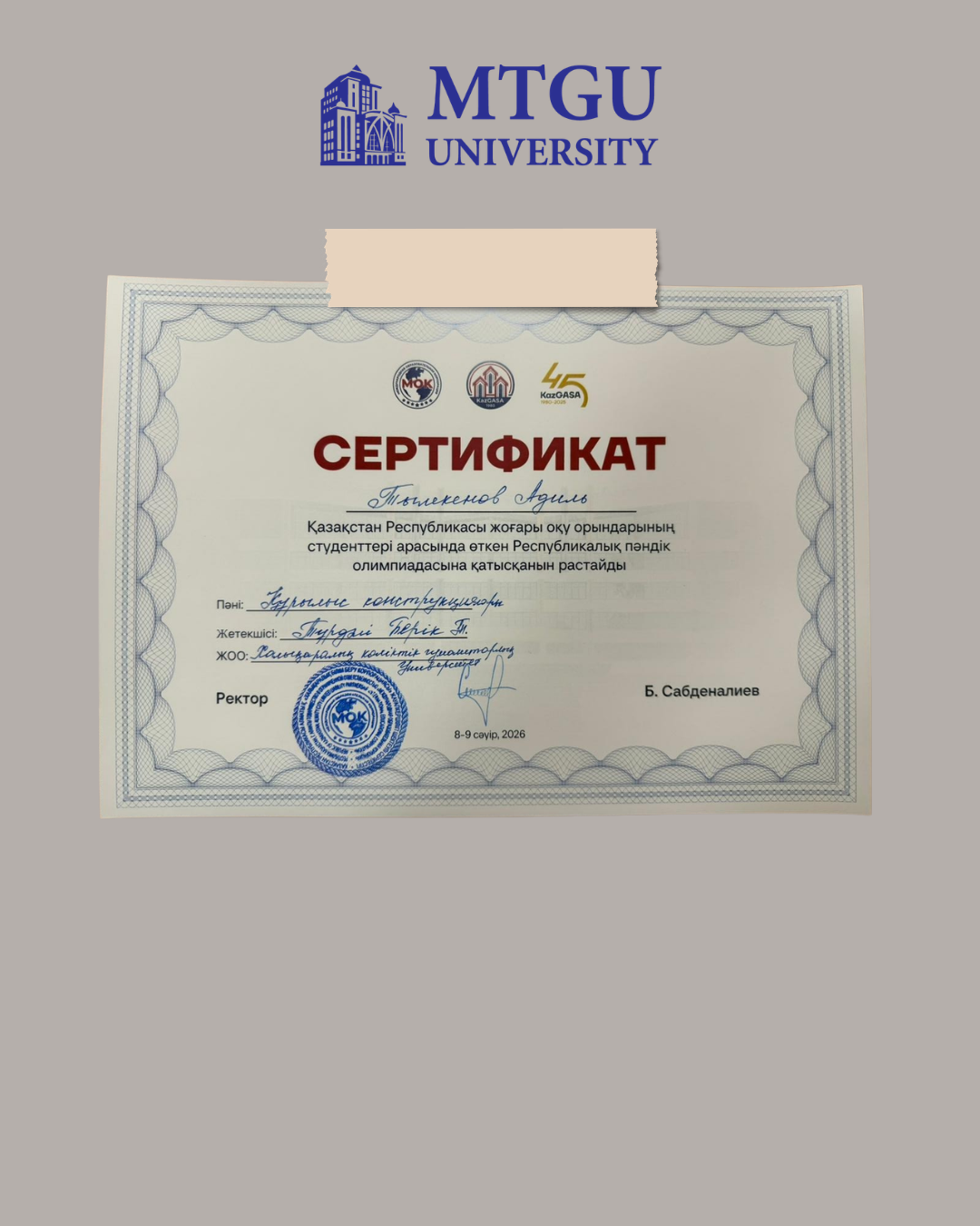 Халықаралық көлік-гуманитарлық университетінің В073 «Сәулет және құрылыс» білім беру бағдарламалары тобы бойынша студенттері 2025–2026 оқу жылындағы Республикалық пәндік олимпиаданың II кезеңіне қатысты.