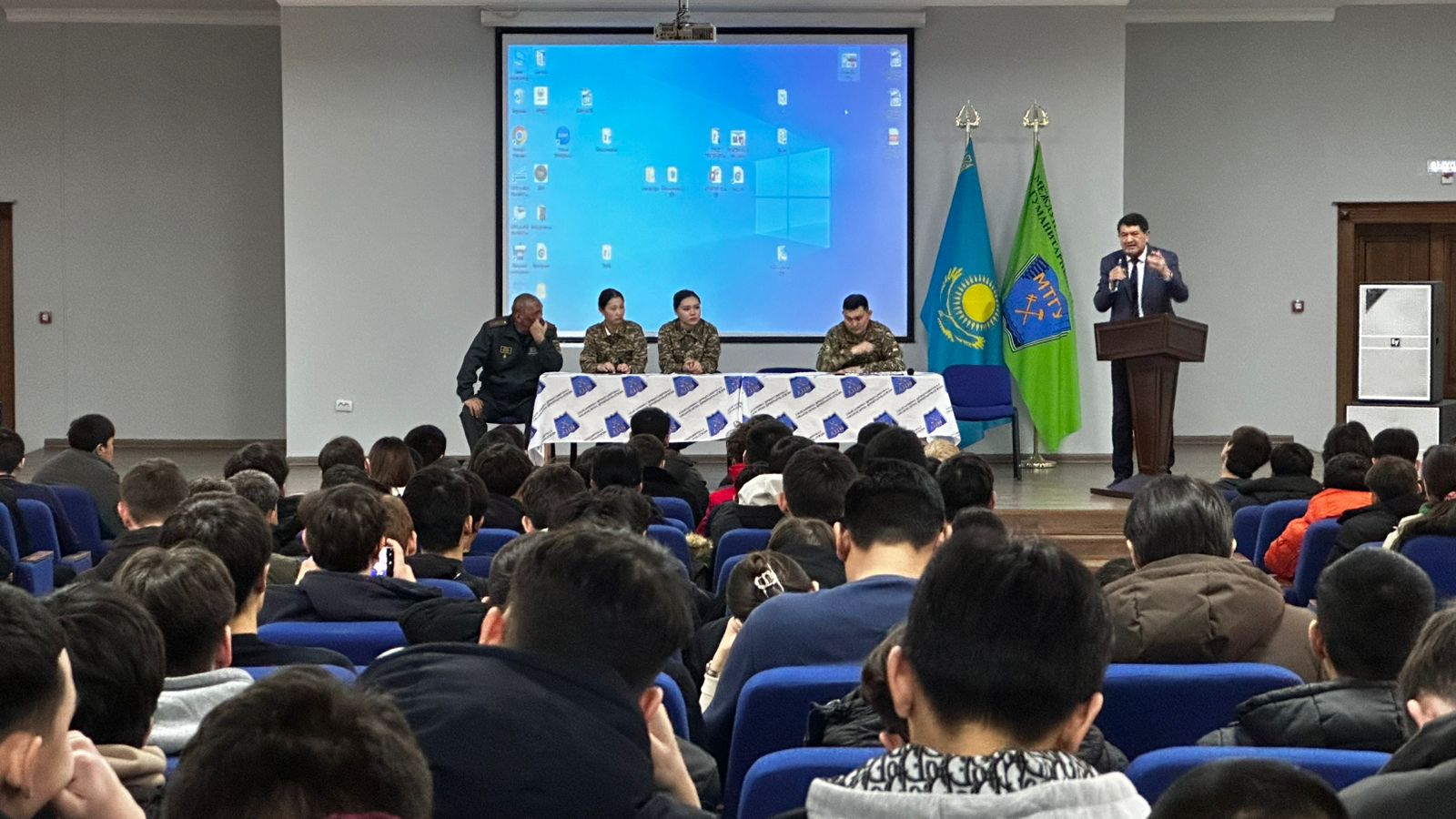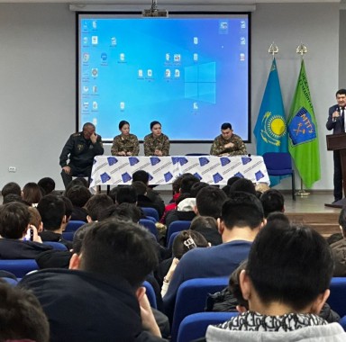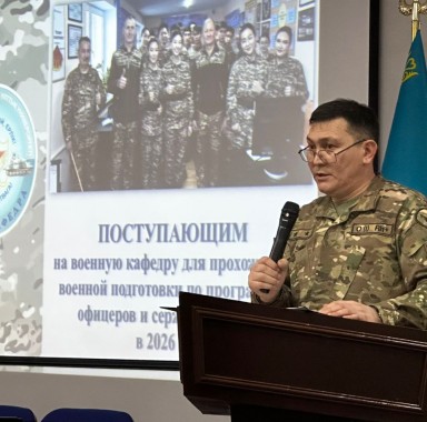 6 февраля в актовом зале университета состоялась разъяснительно-агитационная встреча со студентами 1-2 курсов с участием представителей военных кафедр университетов КазНУ и Нархоз.