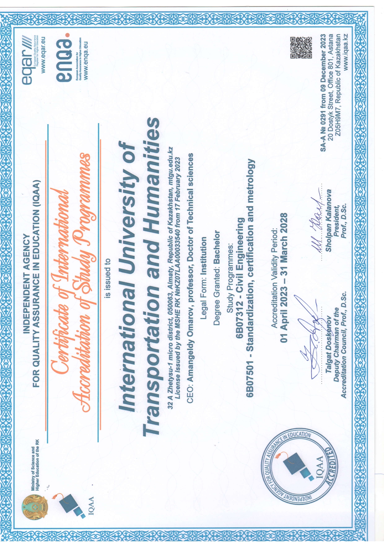 Миссия кафедры-подготовка образованных, конкурентоспособных инженеров-специалистов, отвечающих международным стандартам, обеспечивающих устойчивое развитие транспортной инфраструктуры; проведение передовых исследований в области проектирования, строительства, эксплуатации и реконструкции мостов и тоннелей; содействие социально-экономическому развитию общества путем внедрения инновационных технологий в учебный процесс.