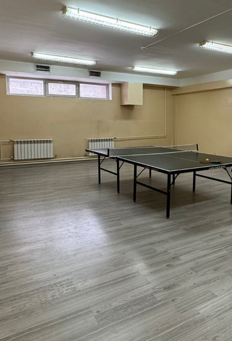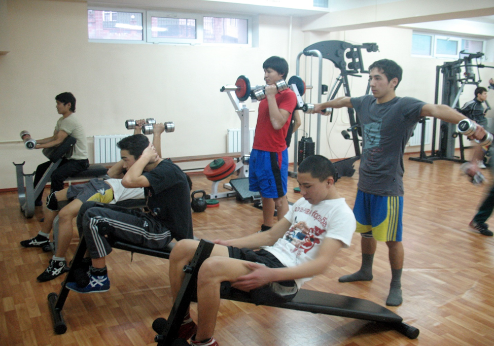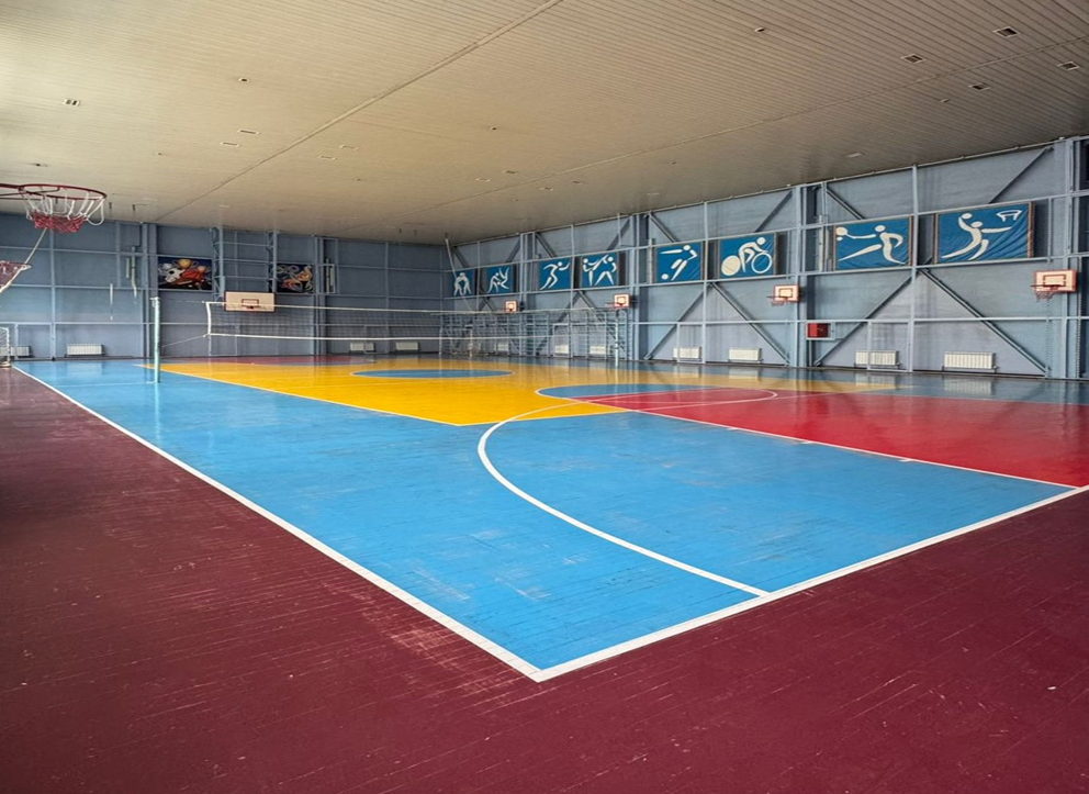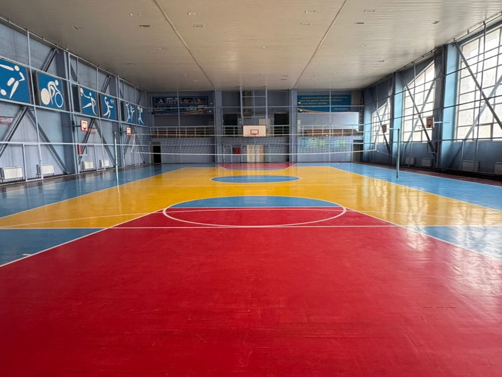 Спорткомплекс имеет игровой зал размером 36м×16м с балконом, канатами для лазания и 15 перекладинами и гимнастическими кольцами, а также борцовский зал с российскими коврами, тренажерный зал с зеркалами, оснащен всеми необходимыми тренажерами, а также имеется штанга, гири с гантелями, зал настольного тенниса , зал гимнастики с зеркалами, а также зал для игры в шашки, шахматы и тогызкумалак. В спорткомплексе работают 6 преподавателей с высшим физкультурным образованием.